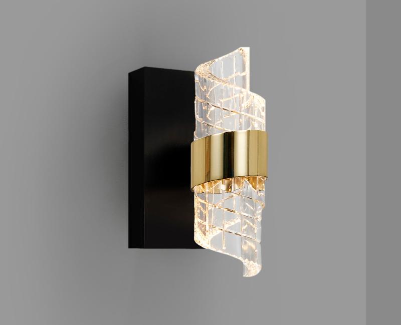 ILIADA-APLIQUE 1L NEGRO-ORO - SCHULLERLámpara de pared de 1 luz LED. Realizada en metal acabado negro mate y oro brillo. Tulipa con diseño en espiral, realizada en acrílico moldeado y tallado. 7W LED. 656 lm. 3.000 K. Material/Tonalidad - Materiales: Metal, acrílico./Metal, acryli - Acabado: Negro, oro, transparente./Blac Iluminación - Potencia Eléctrica: 7W - Lúmenes: 656 - Tonalidad de la luz: 3000 K - Tensión: 180/240 V - Frecuencia: 50/60 Hz - Vida Media: 50000 Horas - CRI: 90 Medidas - Articulo: Ancho 11 cms / Fondo 12 cms / Alto 23 cms - Peso: 0,89 Kg - Pantalla/Tulipa: Diámetro 7 cms / Alto 23 cms - Florón de techo: Ancho 11 cms / Alto 11 cms / Fondo 3 cms Otros Datos de Interés - IP: IP 20 - Código EAN: 8435435339050.0 - Colección: Iliada