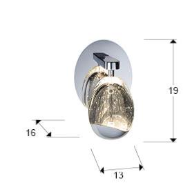 ROCIO APLIQUE 1L CROMO - SCHULLERLámpara de pared de 1 luz LED, realizada en metal acabado cromo. Tulipa con forma de gota realizada en cristal macizo con burbujas decorativas en su interior. 5W LED. 480 lm. 3.000 K. Material/Tonalidad - Materiales: Metal, cristal./Metal, glass - Acabado: Cromado, transparente./Chromed Iluminación - Potencia Eléctrica: 5W - Lúmenes: 480 - Tonalidad de la luz: 3000 K - Tensión: 220/240 V - Frecuencia: 50/60 Hz - Vida Media: 50000 Horas - CRI: 80 Medidas - Articulo: Ancho 13 cms / Fondo 16 cms / Alto 19 cms - Peso: 1,45 Kg - Pantalla/Tulipa: Diámetro 9 cms / Alto 13 cms - Florón de techo: Diámetro 12 cms / Alto 3 cms Otros Datos de Interés - IP: IP 20 - Código EAN: 8435435338633.0 - Colección: Rocío