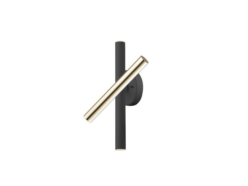 Lámpara de pared de 3 luces LED con brazo giratorio . Realizada en metal acabado oro brillo y negro mate. Difusor acrílico opal. 15W, 1350 lm, 3.000 K. DIMABLE