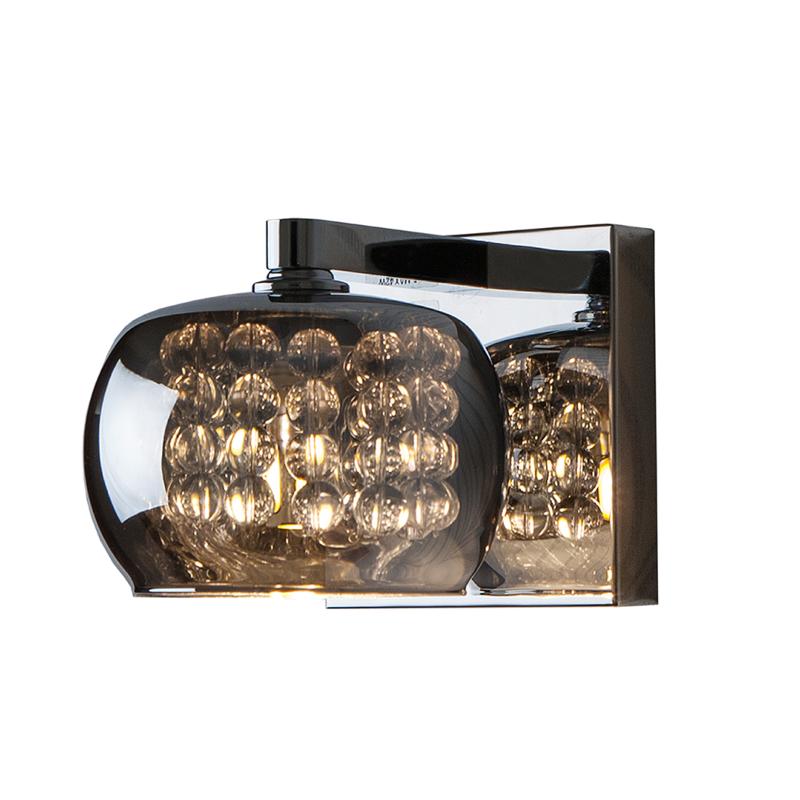 APLIQUE ·ARIAN· 1L - SCHULLERLampara de pared de 1 luz, realizada en acero acabado brillo. Tulipa de cristal espejado con tiras de cuentas de cristal en el interior. Material/Tonalidad - Materiales: Acero y cristal/Steel and glas - Acabado: Brillo. Espejado y transpte./B Iluminación - Número de Bombillas: 1 - Tipo de Bombillas: G9 - Bombillas incluidas: Sí - Potencia por Bombilla: 6W - Voltaje de Bombilla/s incluidas: 220 V - Potencia Eléctrica: 10W - Lúmenes: 550 - Lúmenes por Bombilla: 550.0 - Tensión: 220/240 V - Frecuencia: 50 Hz - Frecuencia de Bombilla: 50 Hz Medidas - Articulo: Ancho 13 cms / Fondo 16 cms / Alto 12 cms - Peso: 0,6 Kg - Pantalla/Tulipa: Diámetro 13 cms / Alto 10 cms - Florón de techo: Ancho 12 cms / Alto 12 cms / Fondo 2 cms Otros Datos de Interés - IP: IP 20 - Código EAN: 8435435313012.0 - Colección: Arián