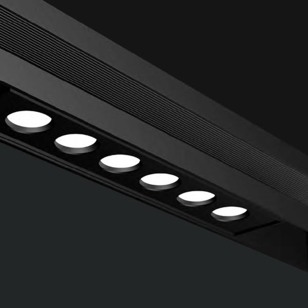 es lo fácil que resulta su montaje. Basta con fijar el carril a la superficie deseada y, posteriormente, colocar los focos o accesorios en el interior. Gracias al sistema magnético, los módulos quedan conectados al instante, sin necesidad de cables adicionales ni herramientas. Esto permite reorganizar la iluminación en cualquier momento con un simple gesto.