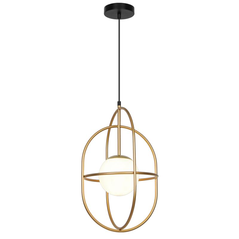 Colgante 1L de la colección ASTRO en acabado Dorado, con tulipa opal en el centro. Usa bombilla E-27, compatible con bombillas LED (no incluida)Medida pantalla: Ø30cm x H47Tamaño bola opal: Ø15cm.