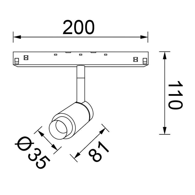 Foco carril Imantado Coleccion MAGNETO 48V negro 7w