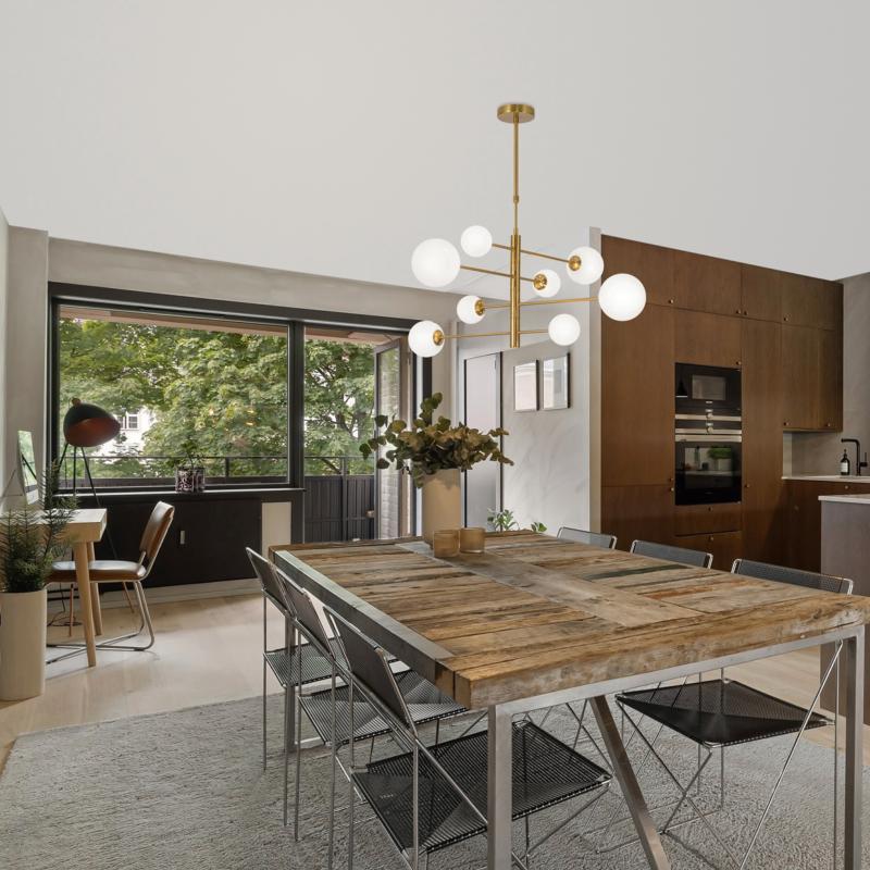 Lampara 8 L COSMICA latón opal 8 x 28w g-9 - ALEMAR
