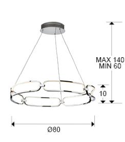 COLETTE- LAMPARA Ø80 CROMO - SCHULLERLámpara LED grande, realizada en aluminio acabado cromo. Difusores de silicona opal. Regulable en altura. 65W LED, 5.850 lm, 3.000 K. DIMABLE. Material/Tonalidad - Materiales: Aluminio, silicona./Aluminium, - Acabado: Cromado, opal./Chromed, opal Iluminación - Potencia Eléctrica: 65W - Lúmenes: 5850 - Tonalidad de la luz: 3000 K - Tensión: 180/240 V - Frecuencia: 50/60 Hz - Vida Media: 50000 Horas - CRI: 80 Medidas - Articulo: Diámetro 80 cms / Alto 10 cms - Lámpara instalada: Altura Mínima 60 cms / Altura Máxima 140 cms - Peso: 2,4 Kg - Florón de techo: Diámetro 21 cms / Alto 5 cms Otros Datos de Interés - IP: IP 20 - Código EAN: 8435435327866.0 - Colección: Colette