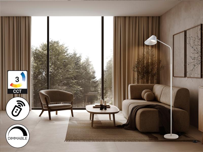 ESINO- PIE SALON 1L BLANCO - SCHULLERLámpara de pie, realizada en metal y alumnio, acabado blanco mate, difusor opal. Pulsador táctil y CONTROL REMOTO. Foco orientable, luz dimable, temperatura de color regulable. 10W LED, 900 lm, CCT 3000K-6500K. Material/Tonalidad - Materiales: Metal, aluminio, ABS/Metal, al - Acabado: Blanco mate, opal./Matt white, Iluminación - Potencia Eléctrica: 10W - Lúmenes: 900 - Tonalidad de la luz: 3000-6500 K - Regulable mediante: CONTROL RE - Tensión: 220/240 V - Frecuencia: 50/60 Hz - Vida Media: 50000 Horas - CRI: 84 Medidas - Articulo: Ancho 49 cms / Fondo 23 cms / Alto 158 cms - Peso: 3,23 Kg - Pantalla/Tulipa: Ancho 19 cms / Alto 12 cms / Fondo 17 cms Otros Datos de Interés - IP: IP 20 - Código EAN: 8435435343262.0 - Colección: Esino