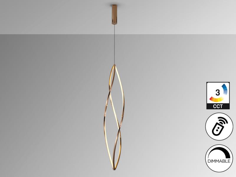 ADELE- LAMPARA GRANDE ORO ROSA - SCHULLERLámpara con luz LED, DIMADO y cambio de color CCT. Realizada en acero acabado oro rosa brillo. Difusor acrílico opal. Regulable en altura. Iluminación LED 60W, 2700-6500 K. Incluye mando a distancia. Material/Tonalidad - Materiales: Acero, acrílico/Steel, acrylic - Acabado: Oro rosa, opal/Rose gold, opal Iluminación - Potencia Eléctrica: 60W - Lúmenes: 1860 - Tonalidad de la luz: 2700-6500 K - Regulable mediante: CONTROL RE - Tensión: 220/240 V - Frecuencia: 50/60 Hz Medidas - Articulo: Diámetro 22 cms / Alto 118 cms - Lámpara instalada: Altura Mínima 150 cms / Altura Máxima 270 cms - Peso: 2,9 Kg - Pantalla/Tulipa: Diámetro 22 cms / Alto 118 cms - Florón de techo: Diámetro 8 cms / Alto 21 cms Otros Datos de Interés - IP: IP 20 - Código EAN: 8435435343460.0 - Colección: Adele