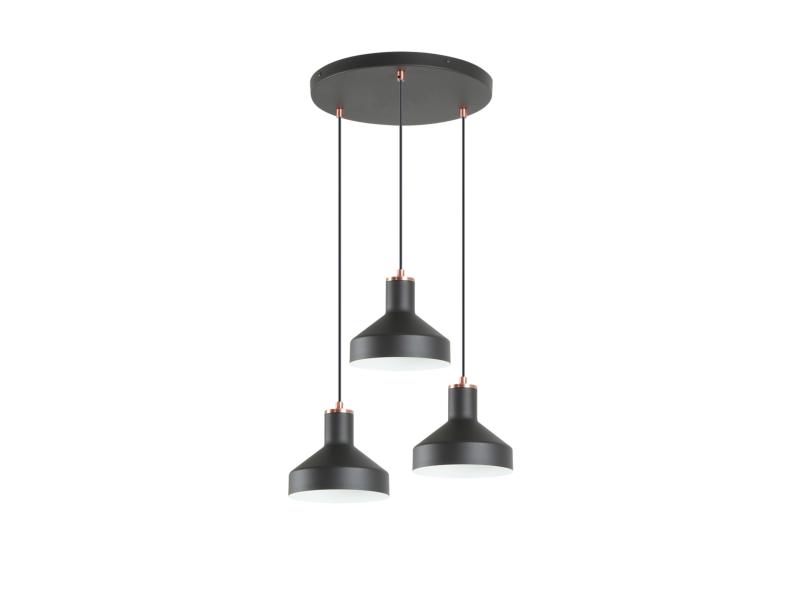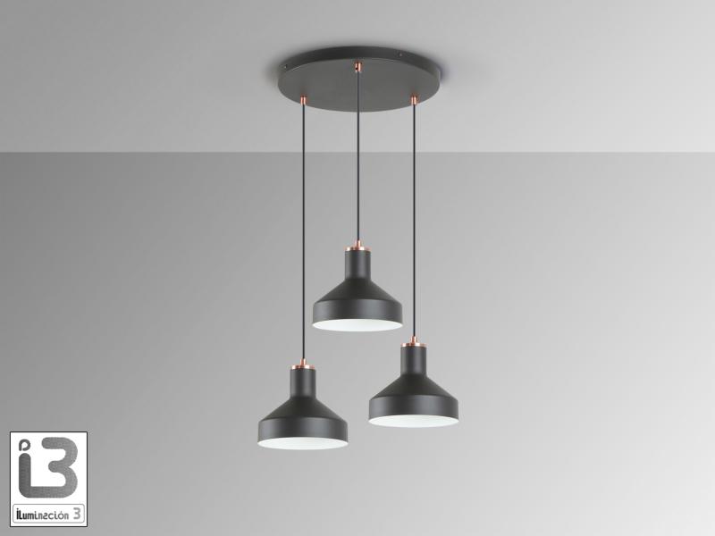 IRIAS LAMPARA 3L NEGRO-COBRE D45 - ILUMINACION i3 By SCHULLERLámpara redonda de 3 luces realizada en metal acabado negro mate y detalles en cobre satinado. Altura regulable. 3 E27 Material/Tonalidad - Materiales: Metal./Metal - Acabado: Negro mate, cobre satinado./Ma Iluminación - Potencia Eléctrica: 3x20W - Tensión: 110/220 V - Frecuencia: 50/60 Hz Medidas - Articulo: Diámetro 46 cms / Alto 17 cms - Lámpara instalada: Altura Mínima 35 cms / Altura Máxima 150 cms - Peso: 2,07 Kg - Pantalla/Tulipa: Diámetro 18 cms / Alto 16 cms - Florón de techo: Diámetro 35 cms / Alto 3 cms Otros Datos de Interés - IP: IP 20 - Código EAN: 8435435342913.0 - Colección: Irias