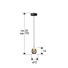 ROCIO LAMPARA COLGANTE 1L NEGRO-ORO - SCHULLERLámpara de 1 luz LED, realizada en metal, acabado negro mate y oro brillo. Tulipa con forma de gota realizada en cristal macizo con burbujas decorativas en su interior, en tono champán. Regulable en altura. 5W LED. 480 lm. 3000 K. Material/Tonalidad - Materiales: Metal, cristal/Metal, glass - Acabado: Negro mate, oro brillo, ambar. Iluminación - Potencia Eléctrica: 5W - Lúmenes: 480 - Tonalidad de la luz: 3000 K - Tensión: 180/240 V - Frecuencia: 50/60 Hz - Vida Media: 50000 Horas Medidas - Articulo: Diámetro 12 cms / Alto 14 cms - Lámpara instalada: Altura Mínima 25 cms / Altura Máxima 170 cms - Peso: 1,2 Kg - Pantalla/Tulipa: Diámetro 9 cms / Alto 13 cms - Florón de techo: Diámetro 12 cms / Alto 5 cms Otros Datos de Interés - IP: IP 20 - Código EAN: 8435435342029.0 - Colección: Rocío