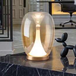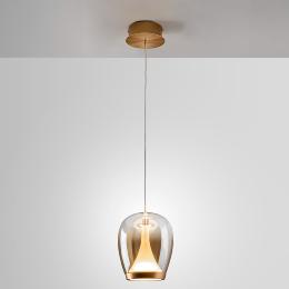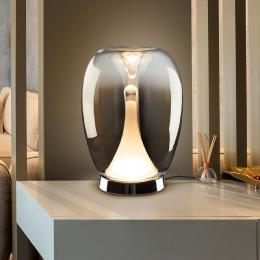 Lámpara realizada en aluminio cromado, con tulipa de cristal soplado acabado smoke degradado y difusor interior opal. Regulable en altura. 15W LED, 900 lm, 3.000 K.