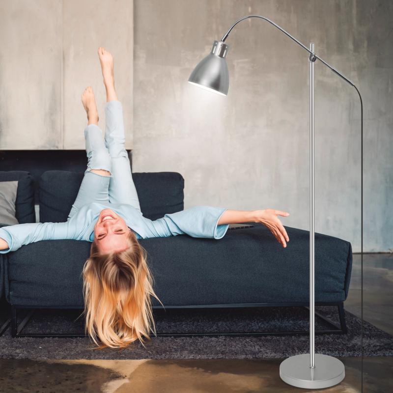 Lampara de pie Falón Cromo Plata Alemar Pie salón de la colección Falón. Fabricado en metal, acabado cromo. 1 x E-27 / 60W Max. Cable PVC negro de 1,8mts. Luz orientable.