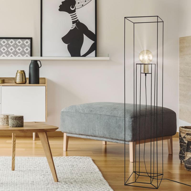 Lampara de pie Kendi Negro Alemar Pie salón de la colección KENDI. Fabricado en metal, acabado Negro con detalle en el portalámpara, de latón. 1 x E-27 / 60W Max. Cable PVC negro de 1,8mts.