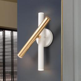 Lámpara de pie de 2 luces LED. Realizada en metal acabado oro brillo y negro mate. Difusor acrílico opal.10W LED, 900 lm, 3.000 K.