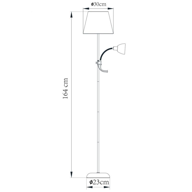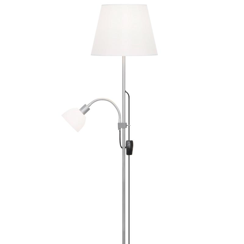 Lampara de pie Sisto Plata Alemar Pie salón de la colección SISTO. Fabricado en metal, acabado plata, Pantalla blanca y Lector acrílico. 1 x E-27 + 1 x E-14 / 60W Max. + 40W Max. Cable PVC negro de 1,8mts. Luz orientable