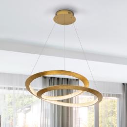 ETERNITY- LAMPARA PAN ORO Ø97 - SCHULLERLámpara realizada en metal, perfil curvo acabado pan de oro y canopí dorado. Difusor de piezas de acrílico transparente. 64W LED. 3.588 lm. 3.000 K. Material/Tonalidad - Materiales: Metal, aluminio , acrilico./Me - Acabado: Dorado, pan oro, transparente. Iluminación - Potencia Eléctrica: 64W - Lúmenes: 3588 - Tonalidad de la luz: 3000 K - Tensión: 180/240 V - Frecuencia: 50/60 Hz - Vida Media: 50000 Horas - CRI: 80 Medidas - Articulo: Diámetro 97 cms / Alto 25 cms - Lámpara instalada: Altura Mínima 75 cms / Altura Máxima 130 cms - Peso: 3,58 Kg - Florón de techo: Diámetro 19 cms / Alto 4 cms Otros Datos de Interés - IP: IP 20 - Código EAN: 8435435336905.0 - Colección: Eternity