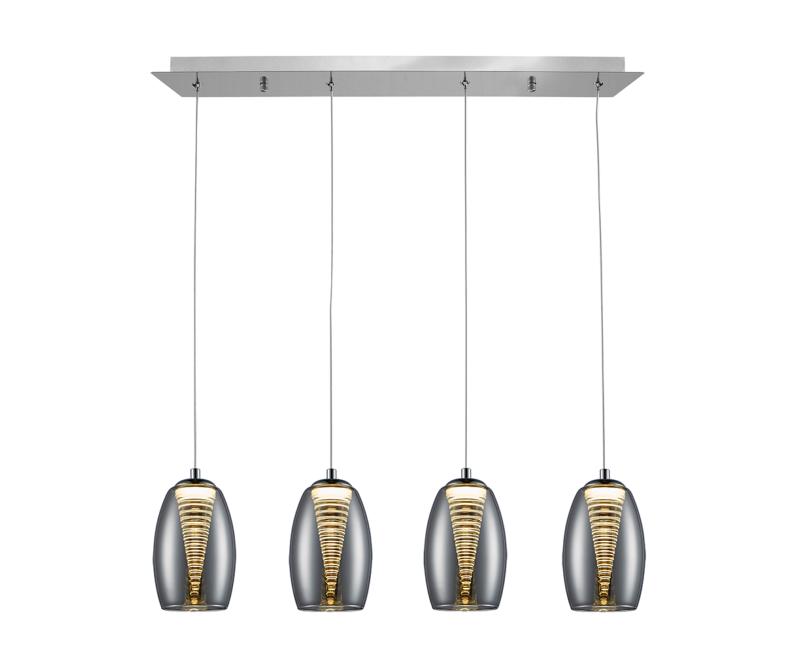 NUEVA NEBULA LAMPARA 4L CROMO - SCHULLERLámpara de 4 luces LED, realizada en metal acabado cromo. Doble tulipa, exterior realizada en cristal espejado e interior en policarbonato transparente con forma de cono escalonado. Regulable en altura. 4x5W LED. 1.800 lm 3.000 K. Material/Tonalidad - Materiales: Metal, cristal, policarbonato/ - Acabado: Cromo, espejado, transparente/ - Tonalidad de Cable: TRANSPARENTE Iluminación - Potencia Eléctrica: 20W - Lúmenes: 1800 - Tonalidad de la luz: 3000 K - Dimable: NO - Tensión: 220 V - Frecuencia: 50/60 Hz - Vida Media: 50000 Horas - CRI: 80 Medidas - Articulo: Ancho 72 cms / Fondo 12 cms / Alto 18 cms - Lámpara instalada: Altura Mínima 35 cms / Altura Máxima 120 cms - Peso: 2,8 Kg - Pantalla/Tulipa: Diámetro 12 cms / Alto 17 cms - Florón de techo: Ancho 65 cms / Alto 4 cms / Fondo 6 cms Otros Datos de Interés - IP: IP 20 - Código EAN: 8435435321673.0 - Colección: Nebula
