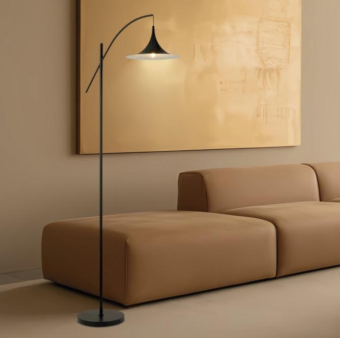 Pie de salón de la Colección CONTE, fabricado en metal con acabado negro.Base de Ø30 cm.1 x E-27 / 60W (no incluida), compatible con bombillas LED.Cable con interruptor ON/OFF en el suelo.