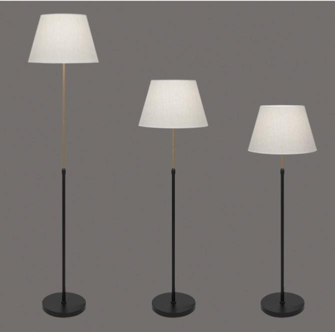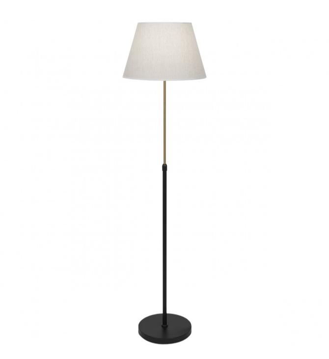Lámpara de pie / Pie de salón de la colección KENDAL. Fabricado en metal, en acabado bicolor, base negra con barra extensible/regulable en latón entre 123 y 153 cm Max. Pantalla de tela. Usa bombilla E-27, 1 x E-27 60W Max. compatibles con bombillas