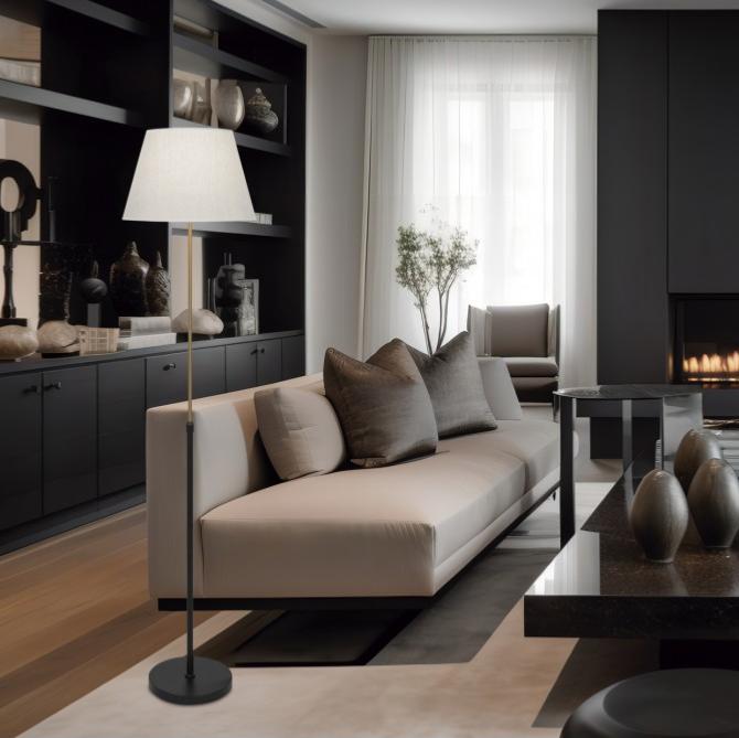 Pie salon KENDAL negro-latón 1 x 60w e-27 - ALEMAR