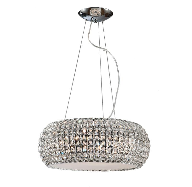 COLGANTE ·DIAMOND· GDE. - SCHULLERColgante de 9 luces realizado en metal acabado cromo. Tulipa compuesta por copens cuadrados de cristal transparente, regulable en altura mediante tensor de acero. Incluye difusor inferior de cristal opal. Material/Tonalidad - Materiales: Metal y cristal/Metal and glas - Acabado: Cromo y transparente/Chrome an - Tonalidad de Cable: Transparente Iluminación - Número de Bombillas: 9 - Tipo de Bombillas: G9 - Bombillas incluidas: Sí - Potencia por Bombilla: 6W - Voltaje de Bombilla/s incluidas: 220 V - Potencia Eléctrica: 9x10W - Lúmenes: 4950 - Lúmenes por Bombilla: 550.0 - Tensión: 220/240 V - Frecuencia: 50 Hz - Frecuencia de Bombilla: 50 Hz Medidas - Articulo: Diámetro 54 cms / Ancho 54 cms / Fondo 54 cms / Alto 21 cms - Lámpara instalada: Altura Mínima 50 cms / Altura Máxima 140 cms - Peso: 8 Kg - Pantalla/Tulipa: Diámetro 54 cms / Alto 20 cms - Florón de techo: Diámetro 18 cms / Alto 6 cms Otros Datos de Interés - IP: IP 20 - Tiempo aproximado de montaje: 20 Minutos - Código EAN: 8435435305161.0 - Colección: Diamond