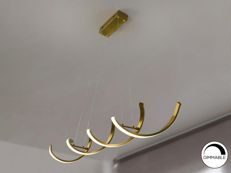 DIDO- LAMPARA ORO - SCHULLERLámpara realizada en metal y aluminio, acabado dorado brillante. Difusor de silicona opal. Altura regulable. 33W LED, 2.100 lm, 3.000K Material/Tonalidad - Materiales: Metal, silicona./Metal, silico - Acabado: Oro brillo, opal./Bright gold, Iluminación - Potencia Eléctrica: 33W - Lúmenes: 2100 - Tonalidad de la luz: 3000 K - Tensión: 180/240 V - Frecuencia: 50/60 Hz - Vida Media: 50000 Horas - CRI: 80 Medidas - Articulo: Ancho 116 cms / Fondo 17 cms / Alto 17 cms - Lámpara instalada: Altura Mínima 55 cms / Altura Máxima 120 cms - Peso: 1,58 Kg - Florón de techo: Ancho 25 cms / Alto 5 cms / Fondo 8 cms Otros Datos de Interés - IP: IP 20 - Código EAN: 8435435337292.0 - Colección: Dido