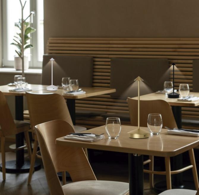 Sobremesa GRAM Alemar ARTICULO NO APTO PARA EXTERIORES. Sobremesa realizado en metal con bateria de hasta 6 horas de autonomia. Su iluminacion LED incluye CCT para seleccionar entre luz fria, neutra o calidad. Encendido mediante interruptor tactil. Carga con cable UBS tipo C incluido en el sobremesa. Disponible en blanco, negro, topo metalizado y Oro.