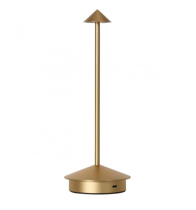 Sobremesa GRAM Alemar ARTICULO NO APTO PARA EXTERIORES. Sobremesa realizado en metal con bateria de hasta 6 horas de autonomia. Su iluminacion LED incluye CCT para seleccionar entre luz fria, neutra o calidad. Encendido mediante interruptor tactil. Carga con cable UBS tipo C incluido en el sobremesa. Disponible en blanco, negro, topo metalizado y Oro.