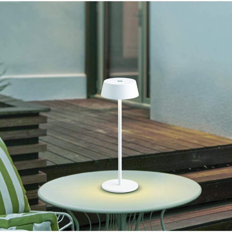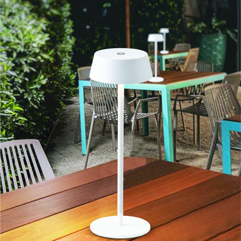 Sobremesa portatil a bateria K4 Mantra El sobremesa K4 blanco es la definición de funcionalidad moderna. Con un diseño minimalista, líneas limpias y acabado mate, esta lámpara portátil aporta una iluminación cálida y versátil perfecta para cualquier entorno. Gracias a su batería recargable y su botón táctil superior, es ideal para usar en interiores o exteriores sin preocuparse por cables. Úsala en mesas de comedor, escritorios, mesillas o terrazas: su diseño ligero y elegante se adapta a cualquier espacio. Ideal para hogares, hostelería y espacios que buscan estilo con libertad de movimiento. Con una carga completa disponemos de un uso de 9 horas. Luz regulable en intensidad. Disponible en Tono Blanco, Negro y marrón Corten Caracteristicas Sobremesa K4 Mantra | | Materiales / Tonalidad | - Cuerpo | Aluminio | | - Tonalidad. | Blanco | Acordonado para exterior | - Articulo para exterior | Si | - Grado de IP | IP 54 | Iluminación | - Luz tipo | Luz Led | - Potencia | 2w | - Lumenes | 180 Lúmenes | - Tonalidad de luz | 3000k (luz semicálida) | | - Encendido mediante | Boton Touch dimable. | | - Horas de uso | 9 Horas | | - Horas de Carga | 7 Horas. | | - Sistema de Carga | Cable Typo-C (incluido) | | Medidas Sobremesa K4 Mantra | |