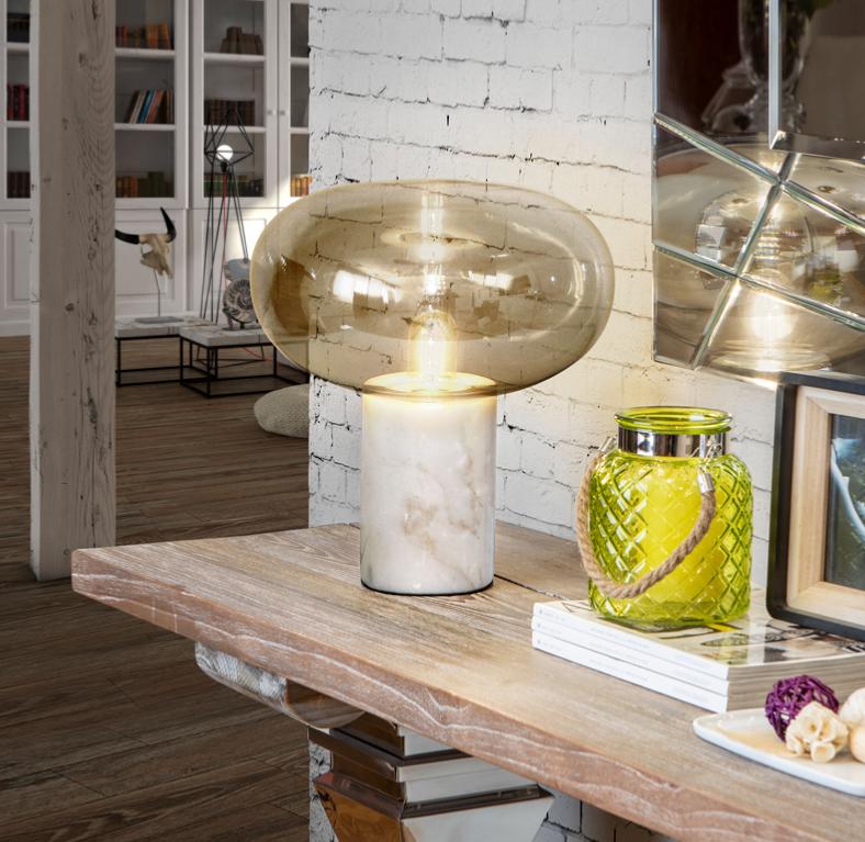 FUNGI-SOBREMESA 1L MARMOL BLANCO - SCHULLERLámpara de sobremesa de 1 luz. Realizado en marmol blanco. Tulipa de cristal soplado ambar. Material/Tonalidad - Materiales: Mármol, cristal./Marble, glass - Acabado: Blanco, ambar./White, amber Iluminación - Número de Bombillas: 1 - Tipo de Bombillas: E27 - Bombillas incluidas: Sí - Potencia por Bombilla: 8W - Voltaje de Bombilla/s incluidas: 220/240 V - Potencia Eléctrica: 20W - Lúmenes: 870 - Lúmenes por Bombilla: 870.0 - Tensión: 220/240 V - Frecuencia: 50/60 Hz - Frecuencia de Bombilla: 50/60 Hz Medidas - Articulo: Diámetro 31 cms / Alto 39 cms - Peso: 5,6 Kg - Pantalla/Tulipa: Diámetro 30 cms / Alto 25 cms Otros Datos de Interés - IP: IP 20 - Código EAN: 8435435333720.0 - Colección: Fungi