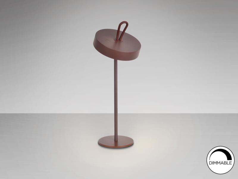 GONG- SOBREMESA LED CORTEN - SCHULLERSobremesa LED para interior y exterior, pantalla portátil con asa de silicona y soporte magnético. Realizado en metal acabado corten y difusor acrílico opal. 2,5W LED, 140lm, 3000K. DIMABLE. IP54. Material/Tonalidad - Materiales: Metal, ABS/Metal, ABS - Acabado: Corten, Opal./Corten, Opal. Iluminación - Potencia Eléctrica: 2.5W - Lúmenes: 140 - Tonalidad de la luz: 3000 K - Tensión: 5 V - Frecuencia: 50/60 Hz - Vida Media: 50000 Horas - CRI: 80 Medidas - Articulo: Diámetro 13 cms / Alto 35 cms - Peso: 0,67 Kg Otros Datos de Interés - IP: IP 54 - Código EAN: 8435435339166.0 - Colección: Gong
