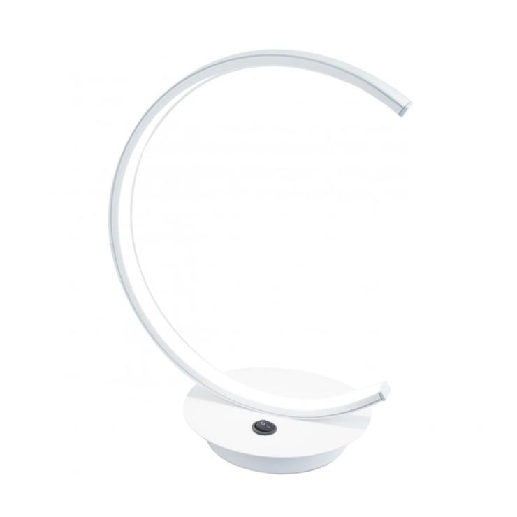 Sobremesa LED de la Colección UBER, fabricada en metal con acabado blanco. Diseño funcional con interruptor de encendido y apagado en la base.LED integrado 5W, 4000K.Cable de color negro.Ideal como iluminación indirecta en dormitorios, salones