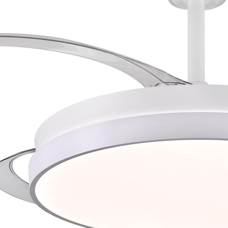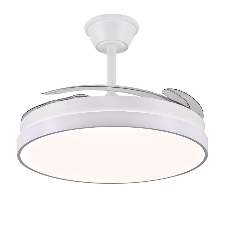 Materiales | - Base Motor: Policarbonato - Aspas: ABS - Difusor inferior: Acrílico | | Tonalidad de Metal | Blanco | Accionado mediante | Mando a distancia. | Programador de apagado | Sí. | Numero de Aspas | 4 | Tonalidad de Aspas | Transparentes | Motor Tipo | DC - Bajo Consumo | Velocidades | 6 | Velocidades / Consumo Flujo de aire / Sonoridad | - 1ª velocidad: 170 rpm - 6.9 w - 3750m3/hora - 15dB - 2ª velocidad: 182 rpm - 8.2 w - 4050m3/hora - 18dB - 3ª velocidad: 195 rpm - 10 w - 4980m3/hora - 21dB - 4ª velocidad: 218 rpm - 15.6 w - 5605m3/hora - 25dB - 5ª velocidad: 245 rpm - 20.8 w - 6050m3/hora - 27dB - 6ª velocidad: 265 rpm - 29.5 w - 6485m3/hora - 30dB | Función Invierno | Si. Activada en el mando. | Luz | Si - Luz LED de 36w+36w. | Lúmenes | 7200 lúmenes | | Tonalidad de la luz | 3000 - 4000 - 6000K Seleccionable. | | Luminaria incluida | Sí | Posible montaje en techo inclinado | Si* | Peso | 4,7 Kg | Grafico de medidas Ventilador Althea P&B |