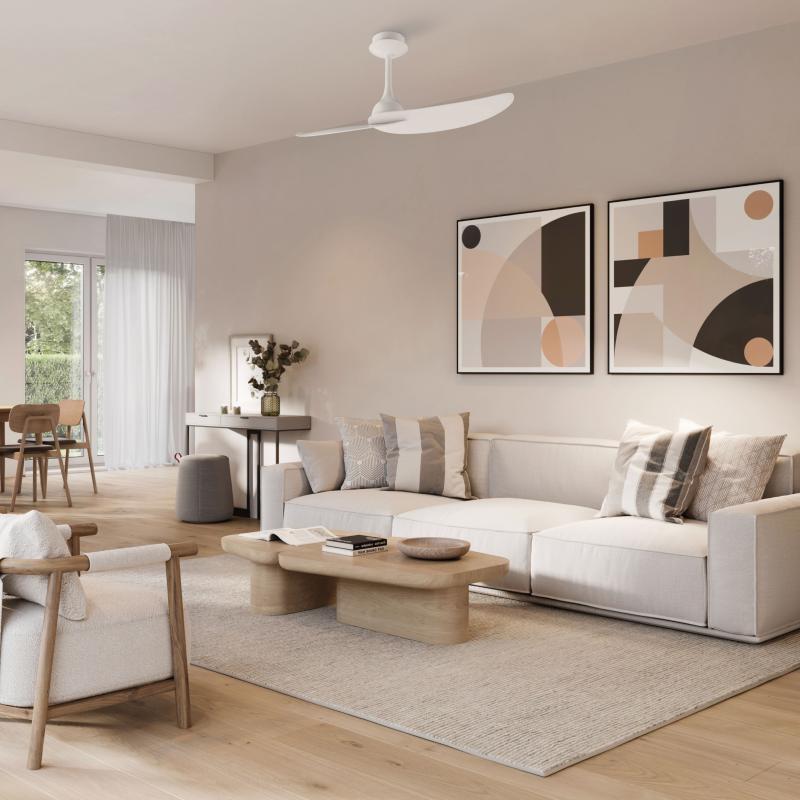 | Ventilador de Techo Ipanema II Mantra | | Ventilador de techo de dos aspas equipado con un Motor DC de bajo consumo de 6 velocidades. Todas las funciones de este ventilador pueden graduarse desde el mando a distancia. | Características Ventilador Ipanema II Mantra | Materiales | - Base motor: Metal - Aspas: ABS | | Tonalidad de Metal | Blanco | Accionado mediante | Mando a distancia | Programador de apagado | Sí | Numero de Aspas | 2 | Tonalidad de Aspas | Blancas | Motor Tipo | DC - Corriente Continua | Velocidades | 6 | | Velocidades / Consumo | - 1ª velocidad: 95 rpm - 4.5 w - 3300 m3 - 30dB - 2ª velocidad: 120 rpm - 6.5 w - 4200 m3 - 34dB - 3ª velocidad: 150 rpm - 11 w - 5100 m3 - 36dB - 4ª velocidad: 180 rpm - 16 w - 5700 m3 - 39dB - 5ª velocidad: 200 rpm - 24 w - 6600 m3 - 43dB - 6ª velocidad: 220 rpm - 32 w - 7800 m3 - 46dB | | Flujo de Aire | 7800 m3 | Función Invierno | Sí. | Luz | No. | Posible montaje en techo inclinado | Sí* | Grafico de medidas Ventilador Ipanema II Mantra |