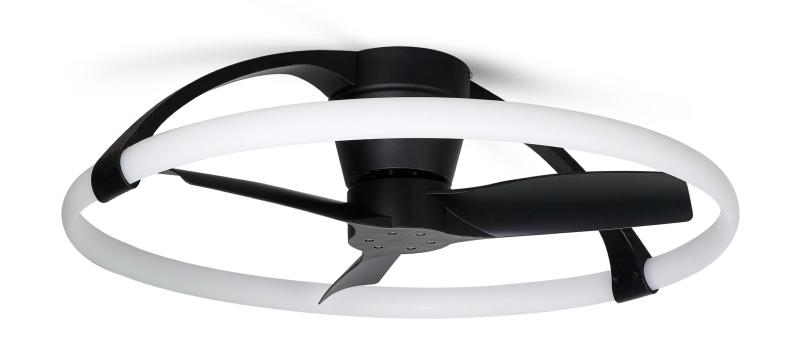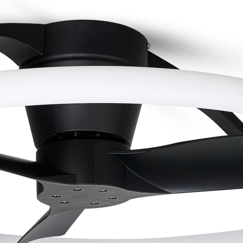 | Ventilador de Techo Nepal Mini Mantra | | Ventilador de techo con gran luminosidad equipado con aro exterior LED con 3 tonalidades de luz a seleccionar y graduar también en intensidad. Motor DC de bajo consumo de 8 velocidades. Todas las funciones del ventilador pueden graduarse desde el mando a distancia, también desde aplicación instalada en cualquier dispositivo con Bluetooh o con la voz a traves de Google home o Alexa. | Caracteristicas Ventilador Nepal Mantra | Materiales | - Base motor: Acrilico y metal - Aspas: Acrilicas | | Tonalidad de Metal | Negro | Accionado mediante | Mando a distancia | Programador de apagado | Sí | Numero de Aspas | 3 | Tonalidad de Aspas | Negras | Motor Tipo | DC - Corriente Continua | Velocidades | 8+1 | Velocidades / Consumo Flujo de aire (m3/hora) / Nivel Sonoro | - Sleep Mode: 100 rpm - 3.5w - 1050 - 33dB - 1ª velocidad: 150 rpm - 5w - 1470 - 35.9dB - 2ª velocidad: 185 rpm - 6w - 1760 - 37.9dB - 3ª velocidad: 220 rpm - 7.5w - 2115 - 39.9dB - 4ª velocidad: 250 rpm - 10w - 2760 - 41.6dB - 5ª velocidad: 280 rpm - 13w - 3510 - 43.3dB - 6ª velocidad: 310 rpm - 18w - 4535 - 45dB - 7ª velocidad: 350 rpm - 24w - 5325 - 47.2dB - 8ª velocidad: 380 rpm - 30w - 5760 - 49dB | | Flujo de Aire | 5760 m3 | Función Invierno | Sí. | Luz | Si - Luz LED 55w. | Datos de Luz | 7200 lúmenes - 2700-5000k - Luz Seleccionable | Luminaria Incluida | Si | Posible montaje en techo inclinado | No | Grafico de medidas Ventilador Nepal mini Mantra |