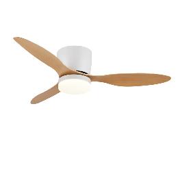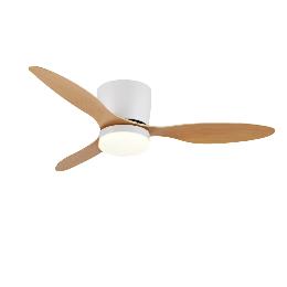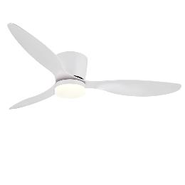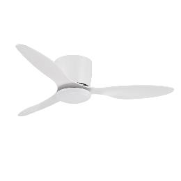Materiales | - Base Motor: Metal - Aspas: ABS - Difusor inferior: Acrílico | | Tonalidad | Blanco | Accionado mediante | Mando a distancia y APP | Programador de apagado | Sí. | Numero de Aspas | 3 | Tonalidad de Aspas | Blanco | Motor Tipo | DC - Bajo Consumo | Velocidades | 6 | Velocidades / Consumo | - 1ª velocidad: 95 rpm - 6w - 2ª velocidad: 105 rpm - 8.4w - 3ª velocidad: 125 rpm - 11.7w - 4ª velocidad: 145 rpm - 16.8w - 5ª velocidad: 170 rpm - 24.9w - 6ª velocidad: 195 rpm - 34.8w | Función Invierno | Si. Activada en el mando. | Flujo de aire máximo | 9485 m3 / hora. | Posible montaje en techo inclinado | No | Peso | 4.6 Kg | Grafico de medidas Ventilador Emily XXL P&B |