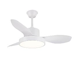 Materiales | - Base Motor: Metal - Aspas: ABS - Difusor inferior: Acrílico | | Tonalidad | Blanco | Accionado mediante | Mando a distancia y APP | Programador de apagado | Sí. | Numero de Aspas | 3 | Tonalidad de Aspas | Decorado madera | Motor Tipo | DC - Bajo Consumo | Velocidades | 6 | Velocidades / Consumo | - 1ª velocidad: 120 rpm - 6w - 2ª velocidad: 141 rpm - 8.4w - 3ª velocidad: 163 rpm - 10.7w - 4ª velocidad: 185 rpm - 15.7w - 5ª velocidad: 206 rpm - 21.7w - 6ª velocidad: 230 rpm - 29.6w | Función Invierno | Si. Activada en el mando. | Flujo de aire máximo | 7485 m3 / hora. | Luz | Si - Luz LED de 36w. | Lúmenes | 3000 lúmenes | | Tonalidad de la luz | 3000 - 4000- 6000K Seleccionable. | | Luminaria incluida | Sí | Posible montaje en techo inclinado | Sí* | Peso | 4.5 Kg | Grafico de medidas Ventilador Ginna S P&B |